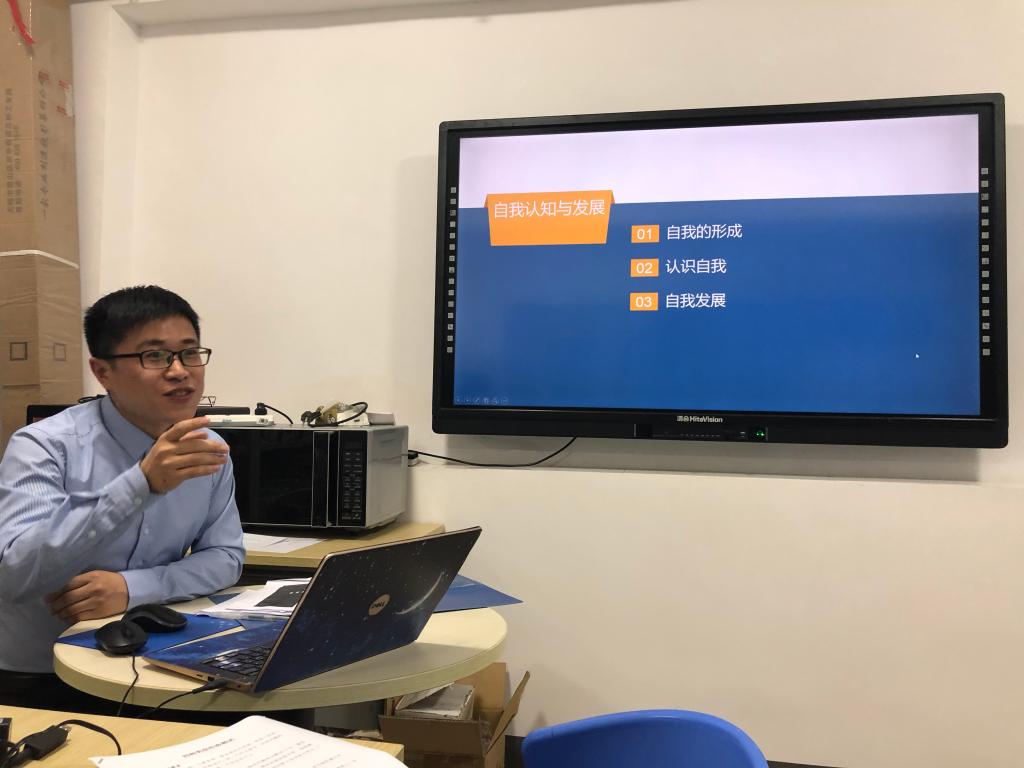 本次研讨课的开始,曾晓燕老师介绍了博士孙刚,接下来孙刚博士通过简要的阐释“钱塘江上信潮来,今日方知我是我”一语的出处和深刻内涵引出了此次导师研讨课的主题“自我的认知和发展”。而后则孙刚博士从自我的形成、认识自我、发展自我三个反面展开,全面而又深入地和同学们探讨了认识自我地重要性和方法。