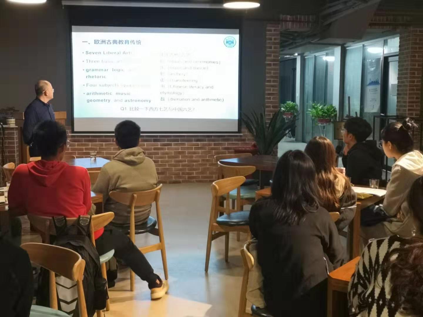 本学期第三讲(总第三十七讲)导师研讨课于10月29日在外国语学院双梧斋·语言学习与文化交流中心举行,报名人数19人,到场人数20人。主讲人为外国语学院稂建中老师,本次导师研讨课主题为英国古典教育思想及其现实意蕴。