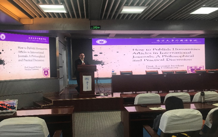 2019年4月1日下午,南京大学Leonard Neidorf教授应我院邀请,于外国语学院学术报告厅作题为“How to Publish Humanities Articles in International Journals”的讲座,讲座由黄晓燕教授主持,外国语学院师生共同聆听了此次讲座。
