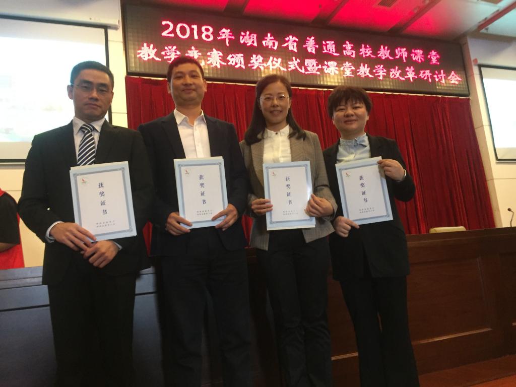 2018年10月27日,湖南省普通高校教师课堂教学竞赛以及湖南省普通高校教师信息化教学竞赛分别举行,我校外国语学院周蕾老师参加湖南省普通高校教师课堂教学竞赛以全省外语组第一名的成绩喜获一等奖,并荣获“湖南省普通高校教学能手”称号,张驰老师参加湖南省普通高校教师信息化教学竞赛荣获一等奖。