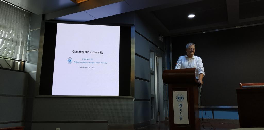 9月27日下午3点,我院新进特聘教授Frank Veltman在学院学术报告厅做了题为“Generics and Generality(通指性与总括性)”的学术报告。