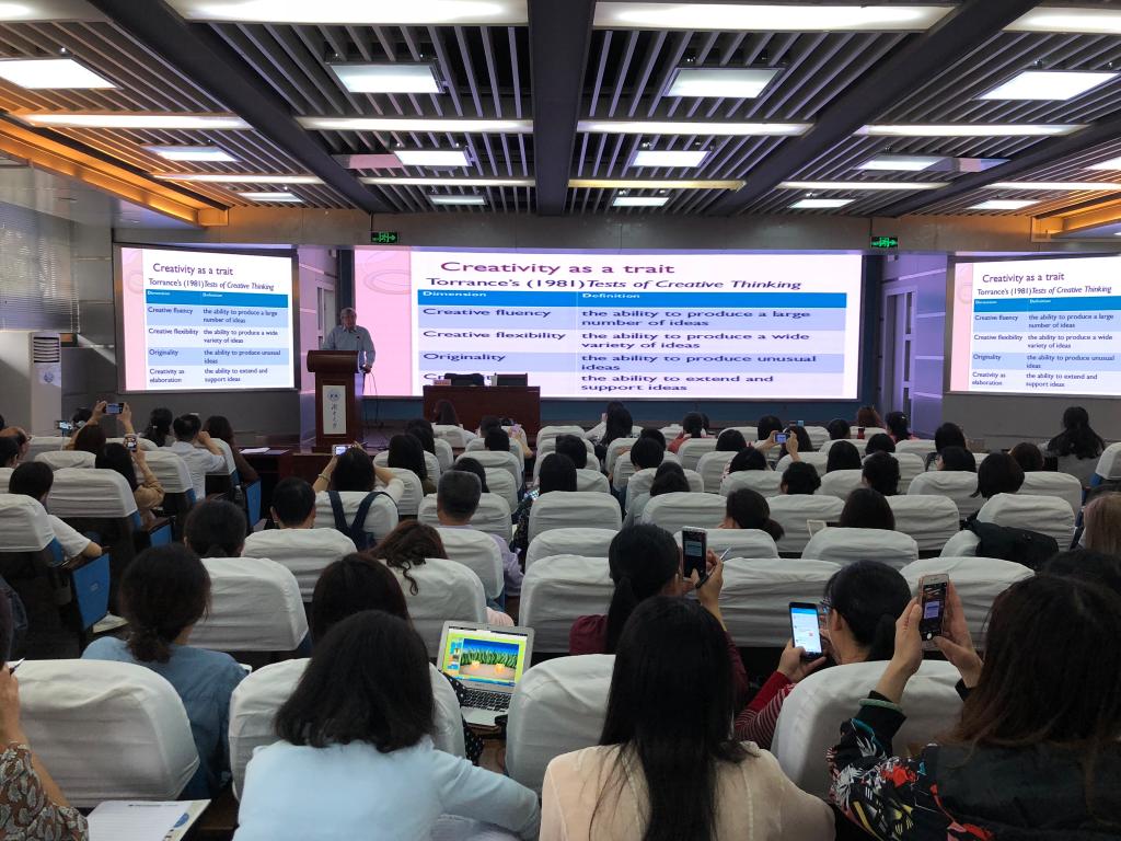 4月19-21日,湖南省外语教师发展研修基地第三期高级研修班在我校成功举办,来自湖南省各高校共计140余名外语教师参加了培训。研修班为期两天,邀请了国际知名二语习得、语言教学和教师教育专家Rod Ellis,上海外国语大学郑新民教授、广西师范学院李晓教授、江南大学董剑桥教授做主题讲座、以及长沙理工大学钟桂蓉老师做课件演示。