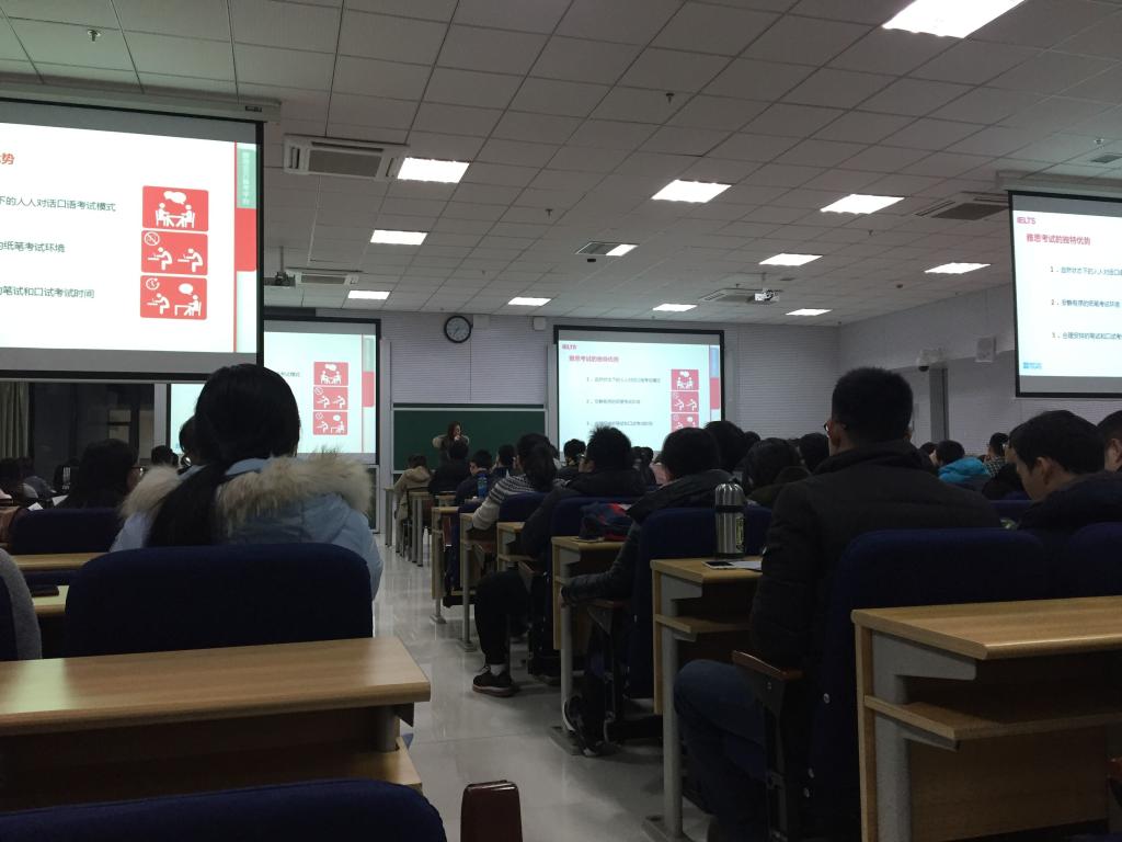 1月16日晚,外国语学院大学外语教学部组织邀请英国文化教育协会(British Council)雅思培训专员Erica Blazs女士及英国文化教育协会市场官员陈雅文女士在研究生楼A201教室为我校学生进行了雅思学生专场培训。