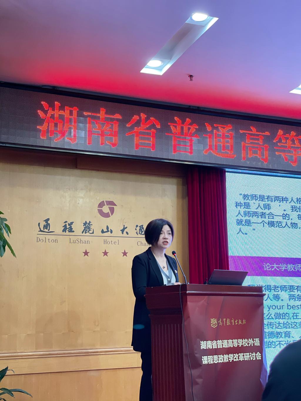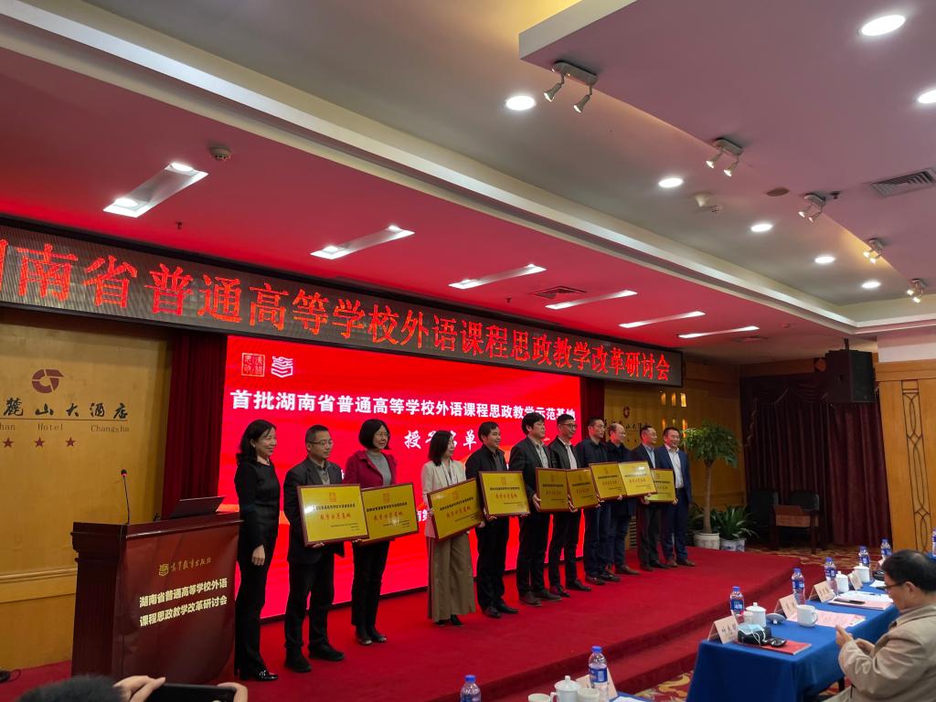 本次会议由湖南省普通高校外国语言文学类专业教学指导委员会主办,高等教育出版社承办,共有来自全省普通高校外语院系负责人和一线教师100多人出席本次会议,我校外国语学院课程思政团队10余人参加。