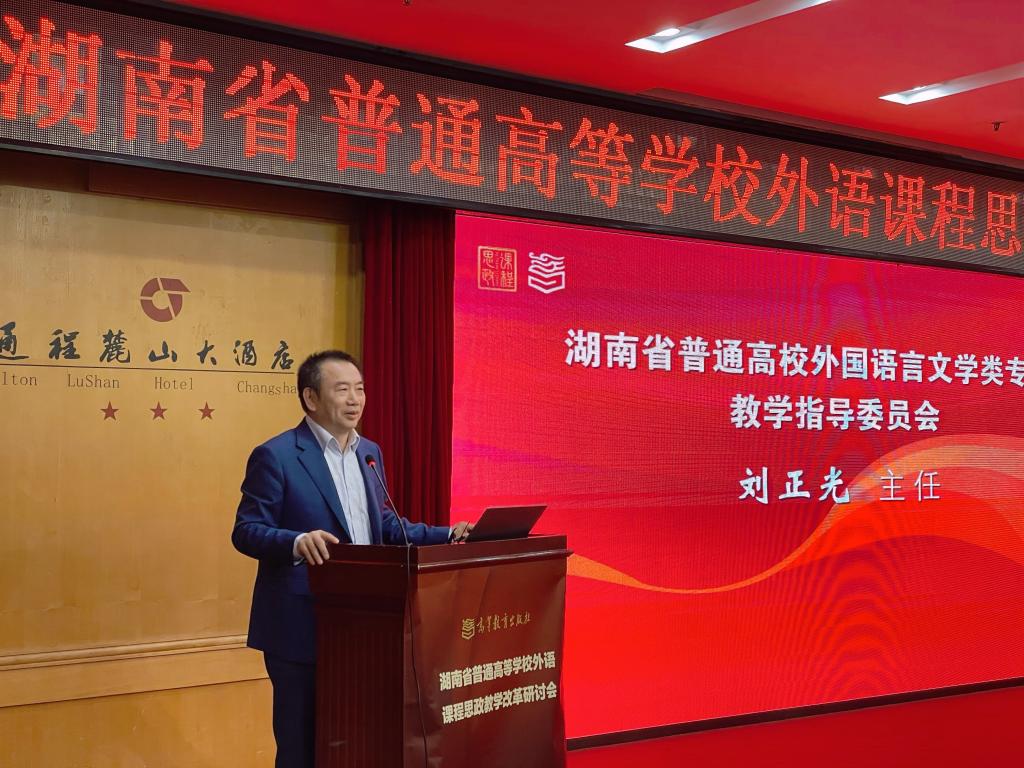刘正光院长在开幕式致辞中表示,湖南省的外语课程思政建设和外语课程思政比赛在全国小有名气,得益于湖南省教育厅领导的高度重视,高等教育出版社的大力支持和省内各高校外语教师的积极参与,体现了湖南人敢为人先的气质和本色。