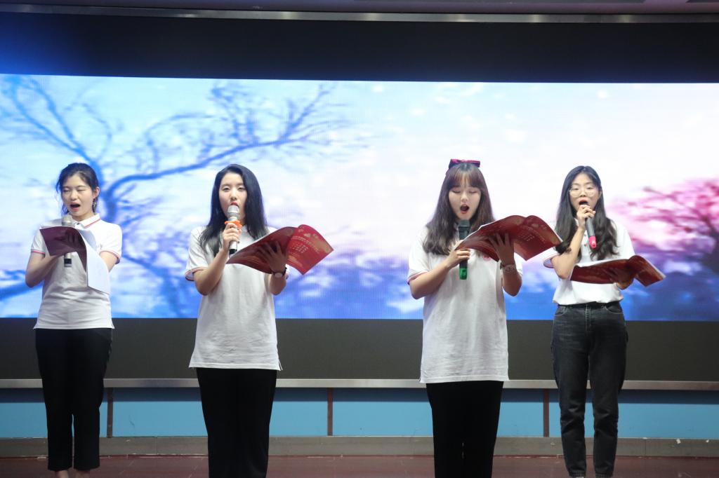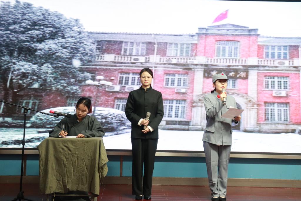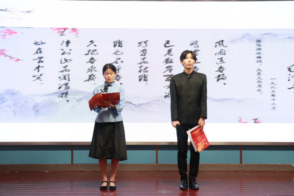 作为暖场节目,来自外国语学院的耿梦琪、林卓诚两位同学分别带来了英文版和日文版的毛主席诗词《水调歌头·游泳》,将毛主席描绘的祖国瑰丽壮美图景生动呈现了出来。王国宇、刘洋木子同学带来的歌曲《强国一代有我在》展现了当代大学生的青春风貌,将气氛推向热烈。