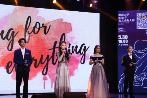 2021年5月30日,湖南大学2021年英文歌曲大赛如期在天马小剧场举行。外国语学院党委书记陈希、校团委副书记唐薇、校团委实践部部长、社团管理部部长王沛然、建筑学院团委书记孙鲁霞、数学学院团委书记蔡煜、外国语学院罗力榕老师、辅导员朱滢婷、辅导员范浩坡出席本次比赛。同时,担任此次英文歌曲大赛决赛评委的有外国语学院英语系副教授陈千谦、大学外语部副教授莫婷、电气与信息工程学院辅导员周果子、机械与运载工程学院辅导员叶胜,以及2019年三校联合英文歌曲大赛决赛前四强选手熊玲珑、李嘉深。