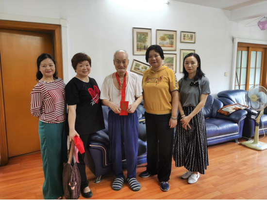 6月30日上午,外国语学院党委书记陈希、副书记熊翀及退休党支部支委一行,上门慰问92岁的姚润民老同志和81岁的吴汉文老同志,给他们送去中共中央颁发的“光荣在党50年纪念章”,并送上慰问金。
