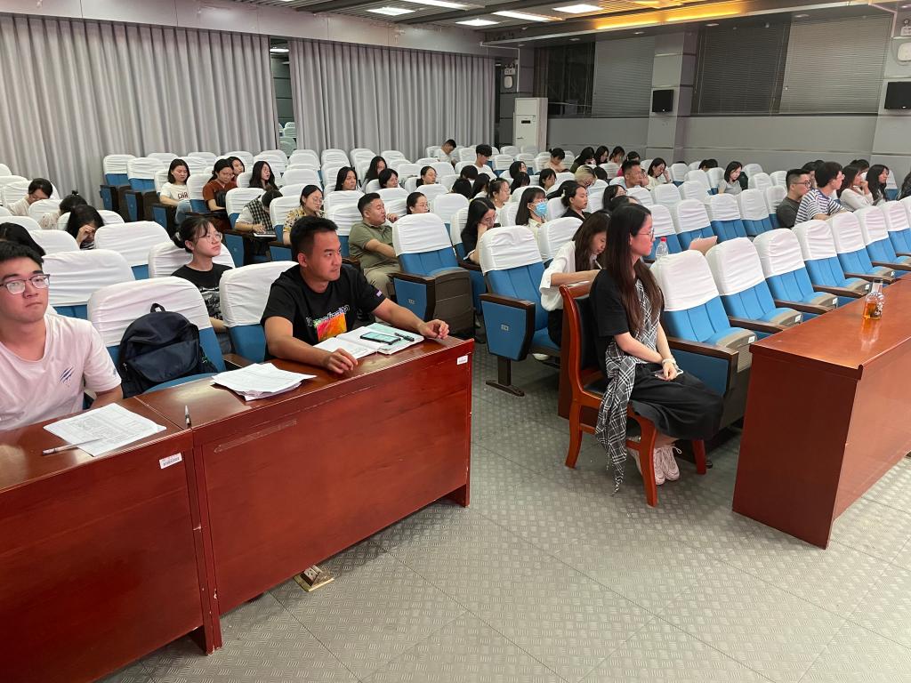 2021年9月22日晚上七点,湖南大学外国语学院第十四期发展对象培训班开班仪式在报告厅举行。学院党委书记陈希在开班仪式上,就教学安排、学习纪律等方面对学员提出了要求,并为新一期的发展对象上党课??嘁鞘接裳芯可砀ǖ荚蓖蹙匆?/span>老师主持,辅导员王卧龙老师参会,第14期发展对象75人参加了开班仪式。
