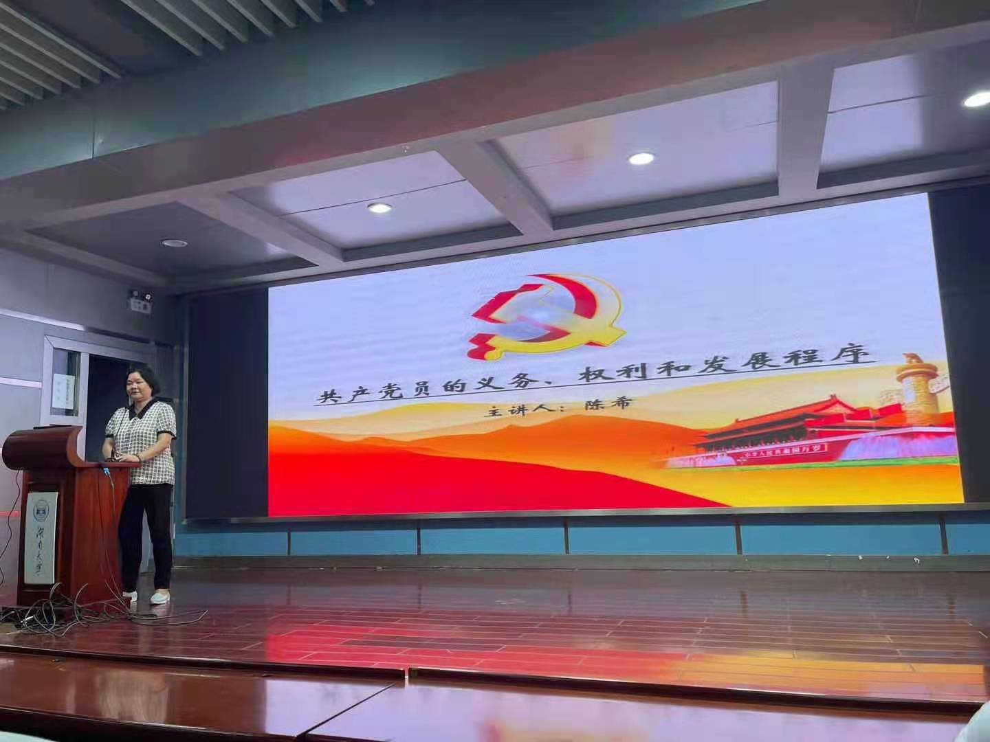 随后,陈希书记分别从共产党员的义务与权利、申请入党的条件和要求、发展党员的程序三个方面进行阐述,要求同学们一定要提高思想站位,明晰入党发展流程不同阶段以及党员权利与义务的辩证关系。陈希书记特别强调,作为党员建设的重要基础性工作,发展入党程序的严谨性不可忽视,并要求同学们高度重视这一流程,时刻持有时间节点意识。