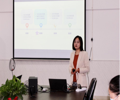 周思静老师获得2021年湖南省普通高等学??纬趟颊萄П热⒂镒ㄒ底橐坏冉钡谝幻K蚶鲜γ欠窒砹似渫庥锟纬趟颊笕氖嫡骄?。在简略地介绍了本次大赛的流程和要求后,周老师重点介绍了其复赛作品“3D Printing Changing the World for the Better”的设计,展示了该作品的设计理念、课程教学目标、教学过程等,分析了如何通过主题统领的方式把价值塑造、知识传授和能力培养扎根教学材料,把高于材料的课程思政元素在课堂教学中隐形实现。