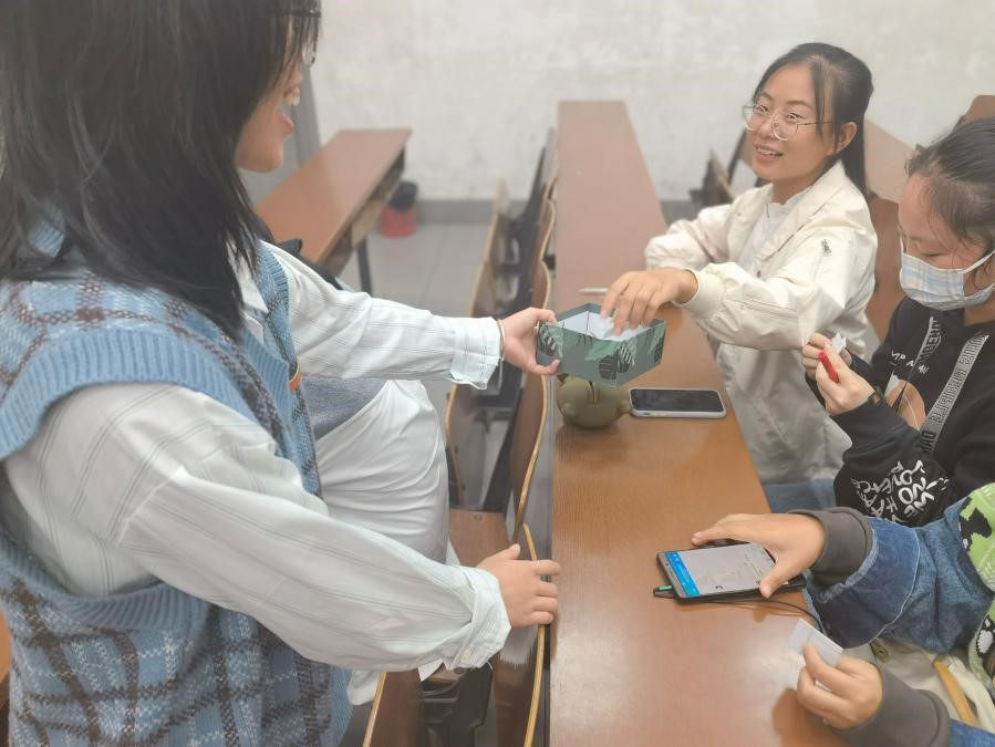 随后全班同学一起进行了一项小游戏,组织委员邹艺苗和活动委员黄艳将写有同学名字的卡片随机下发,同学们写下自己对所抽卡片的同学的印象与寄语,书写结束后将卡片分发给所属同学,使同学们更清楚地认识同学眼中的自己,找到自信,同时更好地改进和进步。