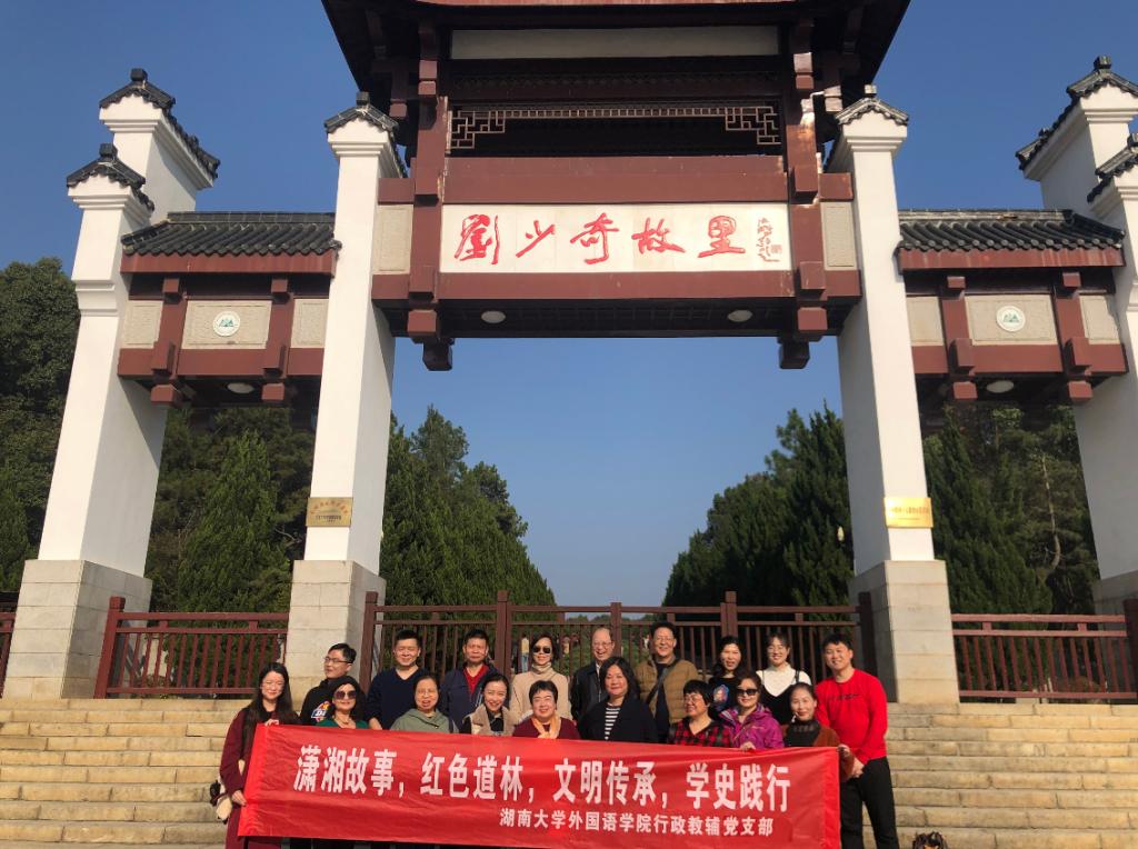 为进一步贯彻落实党的十九届六中全会精神,推动党史学习教育走深走实。2021年12月5日,根据学院党委统一安排,外国语学院行政教辅党支部赴道林古镇、花明楼刘少奇故居及纪念馆开展“潇湘故事、红色道林,文明传承,学史践行”主题党日活动。