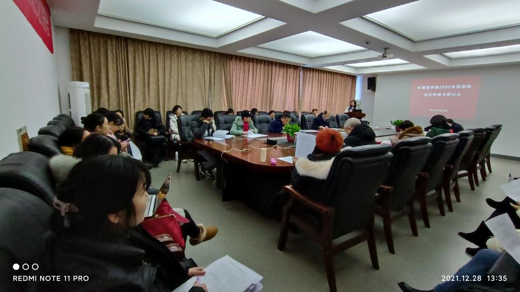 2021年12月28日下午外国语学院2022年国家级社科项目申报研讨会在201会议室召开,全院50余位老师参加,社科处艾洪山副处长和黄亚玲科长出席?;嵋橛伤蔚じ痹撼ぶ鞒帧J紫饶偈髟撼そ不?,他指出国家级社科项目申报对老师职业发展的重要性,总结了我院2021年取得的不错成绩,项目立项和结项工作表现良好,希望来年大家一起努力,继续取得更大进步。接着社科处艾洪山副处长发表讲话。他首先对我院老师牺牲午休时间参加会议表示感谢,被大家表示出的申报热情深深鼓舞。对学院以往的科研工作也充分肯定。最后,他表达了对各位申报者的厚望和祝福。接下来两位青年学者肖宇彤和高焓向大家阐释了自己的申报书各个部分的内容,与会的专家们从题目的拟定、文献综述、框架结构、思路方法等方面提出了意见和建议。大会后,申报人根据选题方向分成了6个小组,进行小组探讨,对申报书进行了细致的打磨,为下一步的申报工作打下良好的基础,会议圆满结束。