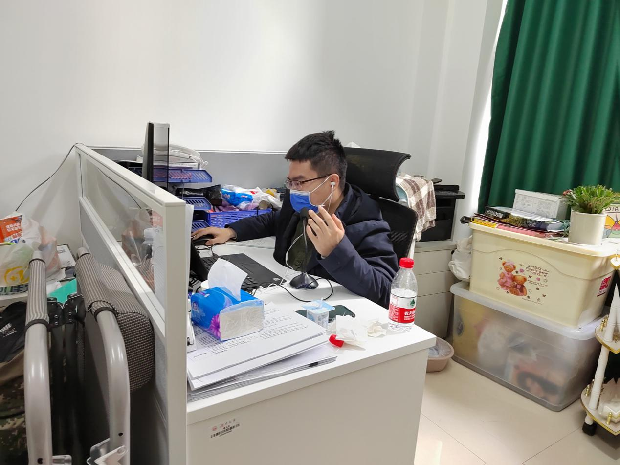 辅导员范浩坡老师作为德智园8栋的入驻园区辅导员,承担了组织8栋722名学生的抗疫工作。每天最基础的工作就是组织整个楼栋七百余人的核酸检测、统计上报数据、以及管理服务81名红码学生的居寝室健康监测和饮食问题。为了做到应检尽检不漏一人,在第一天晚上就带领临时组建的学生干部队伍,对学生寝室一间一间进行摸排,确保数据精准。在如何确保每位同学都在指定时间内高效完成核酸检测,可谓用尽了“心思”。组织志愿者线下登记、参检同学线上打卡、层长一间间寝室确认,确保每天应测尽测。8栋红黄码同学最多时段有90人,涉及四十多间寝室。楼栋组织志愿服务团队,一名志愿者对接一个寝室,保证了这些同学的正常饮食。从大到有同学发热需要转运就诊、同学们的情绪疏导、价值引导,小到同学们手机损坏如何协调送外维修,都是楼栋辅导员要考虑和去为同学服务的内容。范老师说:工作内容很多,事情很具体,每天很辛苦,但能够收获为同学们服务,为学??挂吖ぷ鞴毕琢α康目炖?。