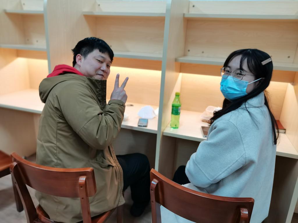 瞿莎蔚老师与陈飞教授一起入驻天马园区。他家住在离学校一个小时车程的地方,入驻园区那天下很大的雨,为了早上8:00之前赶到园区,他天没亮就开车冒雨往学校赶。因为出门匆忙没穿防雨鞋,等他走到园区核酸检测点时鞋子已经湿透,但一直坚持到核酸检测工作全部完成后才回到车上开空调烘干鞋子。瞿老师每周有15节课的教学任务,同时还负责日语系国际交流联络工作,志愿者工作虽然辛苦,但丝毫没有影响他的其他工作,所有的事情安排得非常妥帖,而且还会抽出时间走访宿舍,跟学生一起打打球,跑跑步。瞿老师是个乐天派,到哪里都能给人带去欢笑,他向学院汇报工作时说:“除了床板有点硬,园区生活乐悠悠。我在园区很好,感谢学院的关心!”