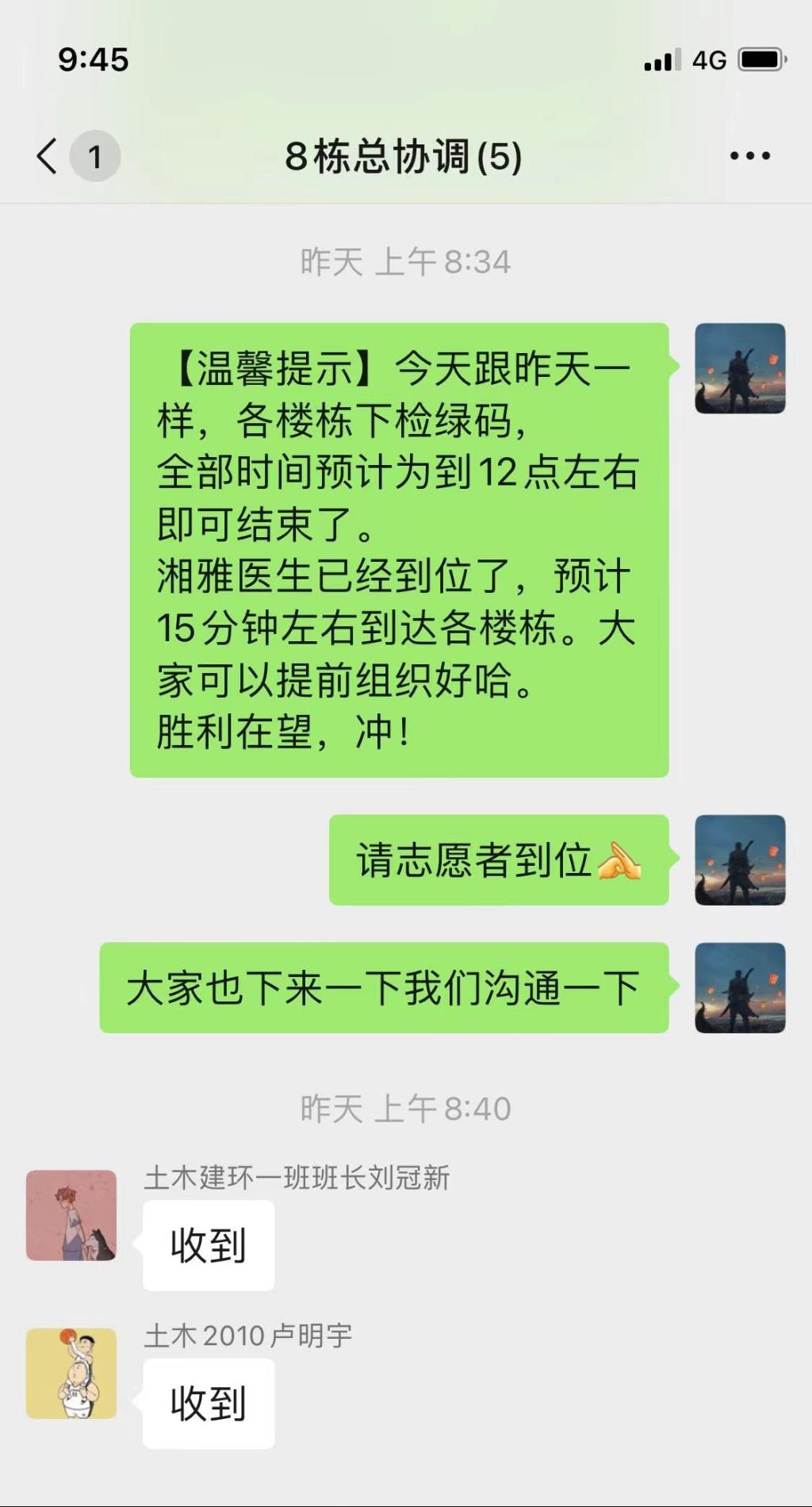 师生同心,其利断金。外国语学院的学生骨干、志愿者们的身影也在一线抗疫的路上,陈梦晴、彭小玲、翟珂、梁云迪、栾奕龙、王爱佳等等一大批外院学子挺身而出,他们协助学院统计数据、为同学派发防疫物资,取餐送餐,他们喊楼提醒打卡.....