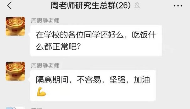 全体班主任老师、研究生导师包括已被集中隔离的王容花老师和王莹莹老师都以线上方式关心学生;疫情首日就开始在封控区居家隔离的陈千谦老师等每天及时与学生沟通和了解学生动态和存在的困难并第一时间反??;针对毕业年级,胡凌、瞿莎蔚等毕业论文导师负责一一对接毕业生,包括论文指导、就业去向和疫情防控。学院台湾籍教授、班主任老师许静芬处在集中隔离状态下,依然坚持实时关心同学情况,及时与同学们沟通交流。