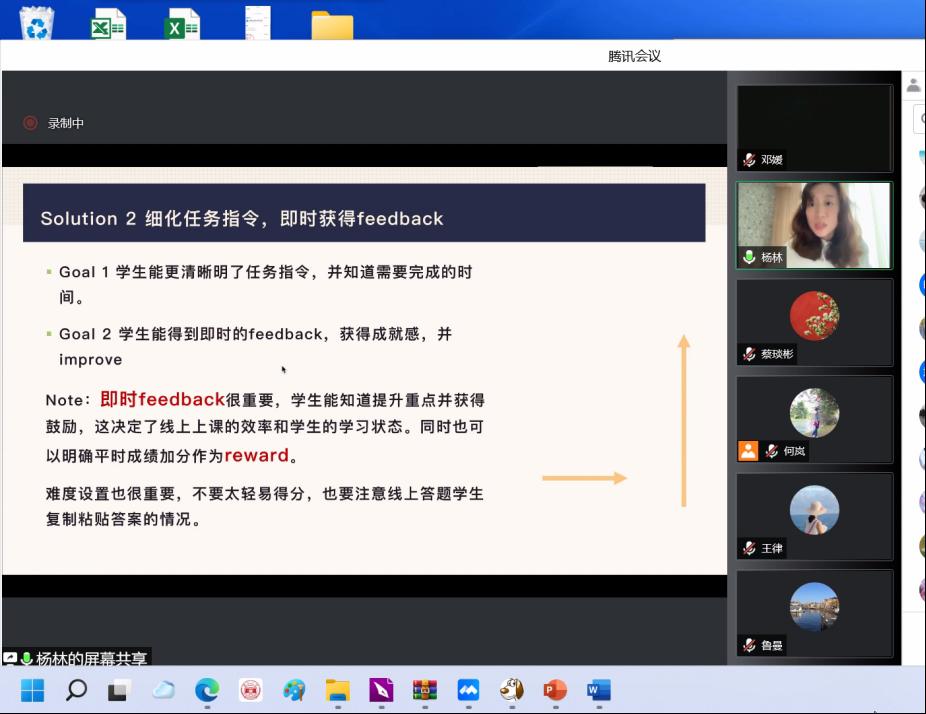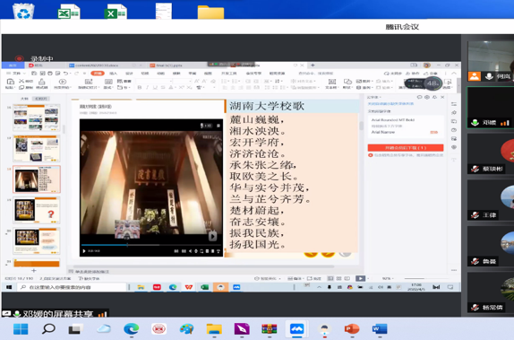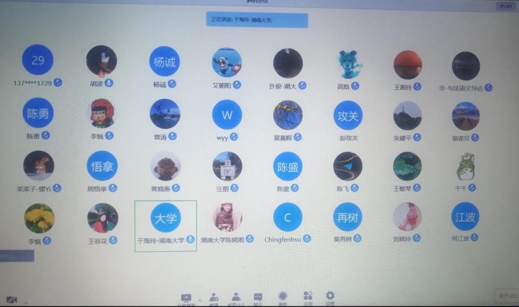 学校封闭一周后,大学外语部举行了全体大学外语授课教师的线上教学研讨会?;嵋橛珊吾爸魅沃鞒?,特邀胡志雯教授解读《湖南大学本科课堂教学质量评价实施办法》,并为大家进行细致的在线教学指导,会议邀请三位有经验的老师对于线上教学经验进行了分享。杨林老师分享了如何提高参与热情,加强互动有效性;刘路老师分享了课前打卡互动,检测学习效果,并提出要加强对学生的心理状态的关注,及时给予鼓励;邓媛老师分享了自己的教案,举例分析在教学中有效融入思政教育。大学外语部在课程思政教学方面一直走在全国前列,大学外语部一直保持着教学研讨、创新设计的优良传统,在质量提升、思政融入上孜孜以求。