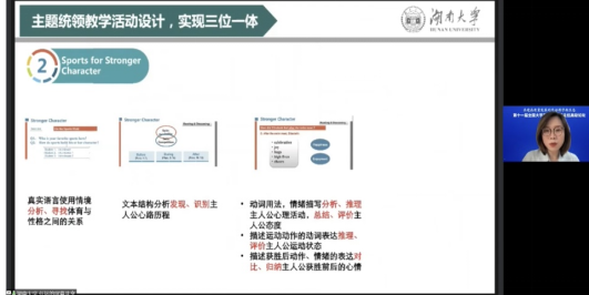 《新目标大学英语综合教程》系列微慕课MooCro以“立德树人”根本任务和“课程思政”总体要求为纲要,通过单元主题引领,借助教材文本分析提炼思政目标,着力探讨思政、语言、思维目标三位一体的实现路径。在思政微慕课研制活动的打磨中,刘正光教授对每位教师负责的单元教案进行分析指导,启发大家进行思政点挖掘,优化教学设计,做好语篇分析。刘教授还特别强调应加强教学互动,在教学中融入中西方文化对比,加强学生文化自信和中外文化互鉴能力,促进学生知识结构的完善和综合能力的提升。