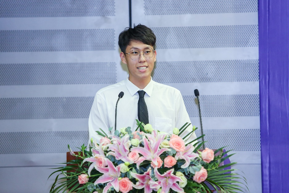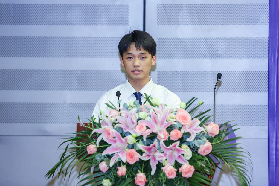 随后,外国语言文学博士李钰茜、本科英语1804班袁渭玉、本科日语1801班苗树分别作为毕业生代表先后表达了自己的心声。他们在发言中回忆了自己在外语院这四年的美好成长经历和丰富的收获,表达了对母校、母院的深切感谢和对即将展翅奔向远方的美好期盼。