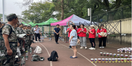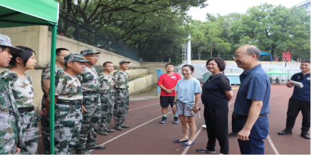 果行育德,硕果累累,全体院领导慰问军训新生。军训期间,外国语学院多次组织院领导、系部负责人、专业教师到场慰问,在新生军训的间隙了解训练情况、为新生答疑解惑,进一步密切师生联系的同时,加强了新生归属感,育人实效凸显。院党委副书记熊翀代表外国语学院为新生、教官、新生助理送上“入秋第一杯果茶”。果茶由外国语学院双梧斋·语言学习与文化交流中心制作,承载着外国语学院对2022级新生“果行育德、硕果累累”的美好祝福。