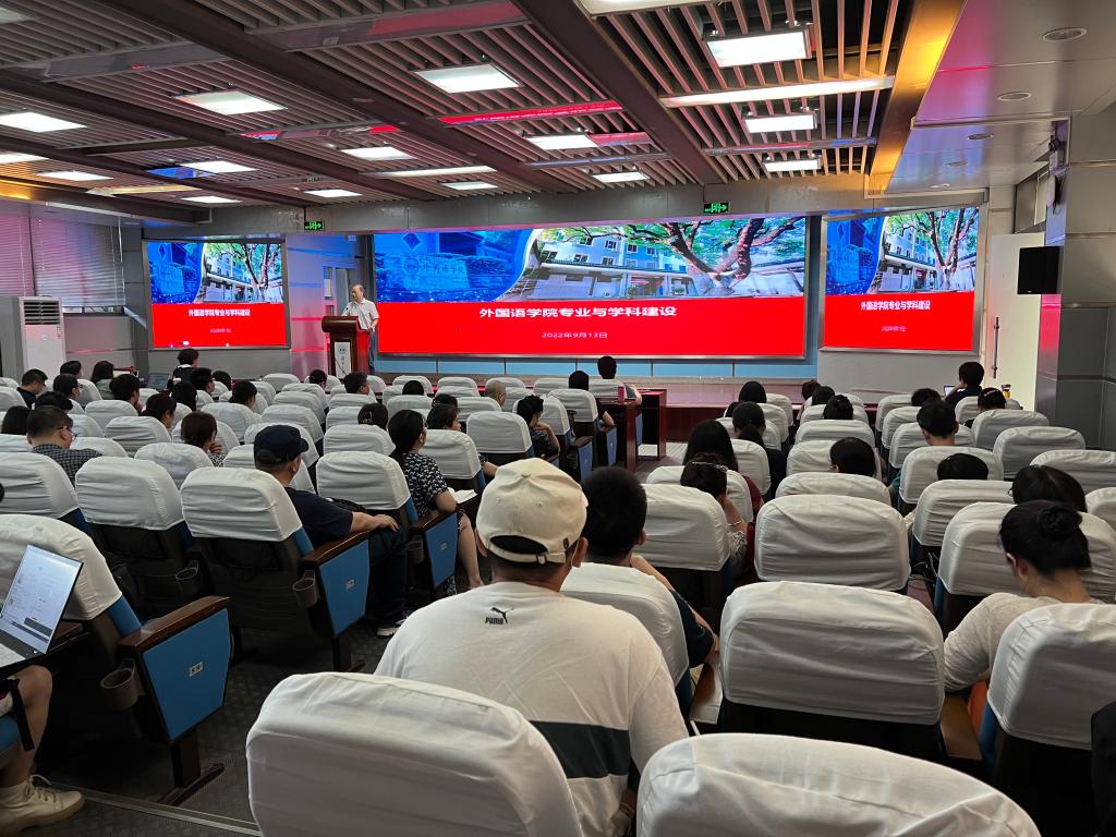 9月13日下午,外国语学院召开学科建设年阶段性自评报告会,莫再树院长作大会报告,陈希书记主持会议,全院教职工参加会议。