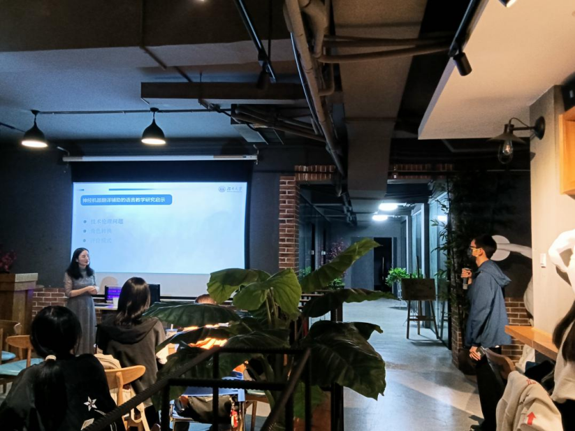 湖南大学外国语学院2022-2023学年秋季学期第二讲(总第六十六讲)导师研讨课于9月22日19:00-20:30在外国语学院双梧斋·语言与文化交流中心成功举办。本次导师研讨课主题为“神经机器翻译与语言学习”,主讲人为外国语学院讲师王律老师。在本次导师研讨课中,王律老师结合自己的研究领域与同学们共同探讨了神经机器翻译对语言学习焦虑、认知负荷和语言产出的影响。