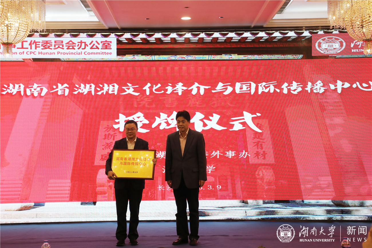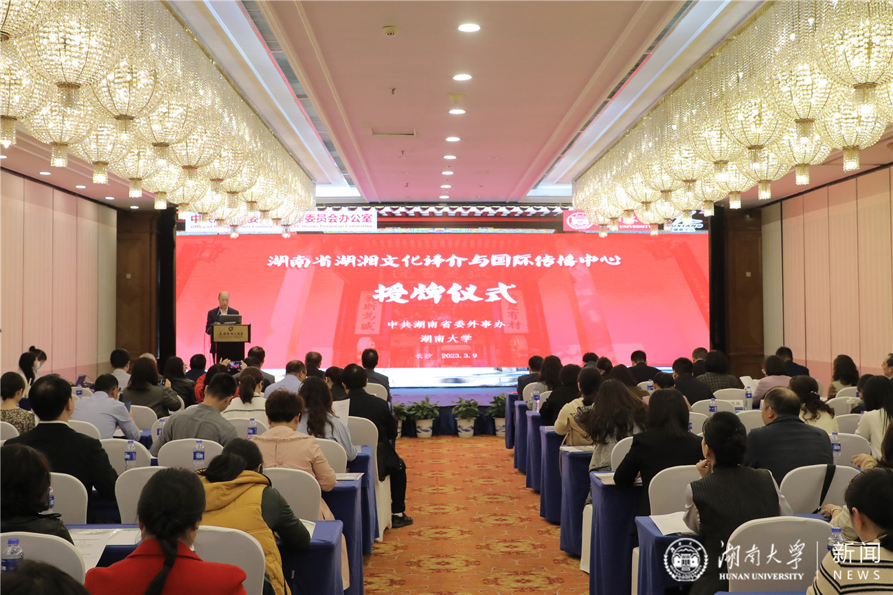 3月9日,“湖南省湖湘文化译介与国际传播中心”授牌仪式在长沙举行。该中心以湖南大学为依托进行建设,致力为译介和传播湖湘文化、塑造湖湘文化国际形象打造优质平台,建设湖湘文化译介与传播高地。