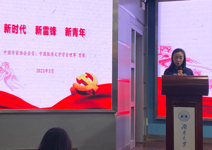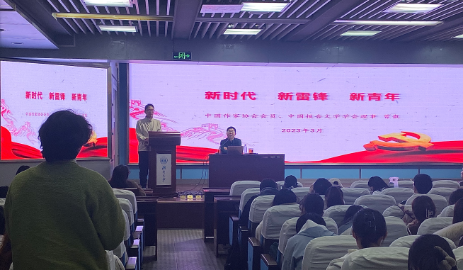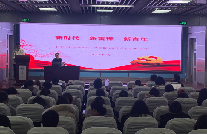 2023年3月21日,为进一步弘扬雷锋精神,积极培育和践行社会主义核心价值观。外国语学院于学术报告厅举办了“新时代、新雷锋、新青年”主题讲座,主讲人为中国作家协会会员、中国报告文学学会理事曾散老师。200余名师生现场聆听。