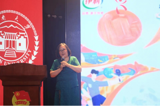 最后,英语系主任胡凌发表总结和点评。胡凌表示,很高兴能看到不同学院、不同专业的同学们的参与,能听到这么多美妙的声音,希望更多热爱英语的同学来参与到这些赛事中来。