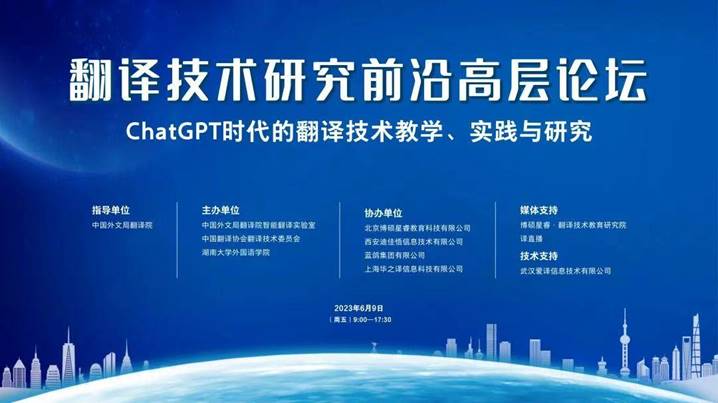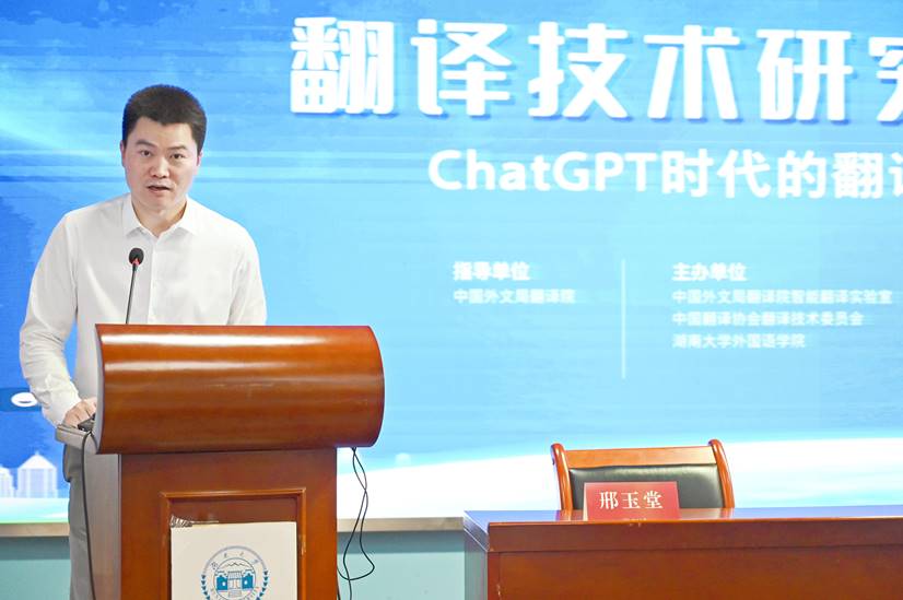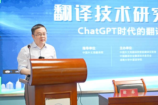2023年6月9日,在中国外文局翻译院指导下,湖南大学外国语学院联合中国外文局翻译院智能翻译实验室、中国翻译协会翻译技术委员会共同主办的“翻译技术研究前沿高层论坛:ChatGPT时代的翻译技术教学、实践与研究”顺利召开。