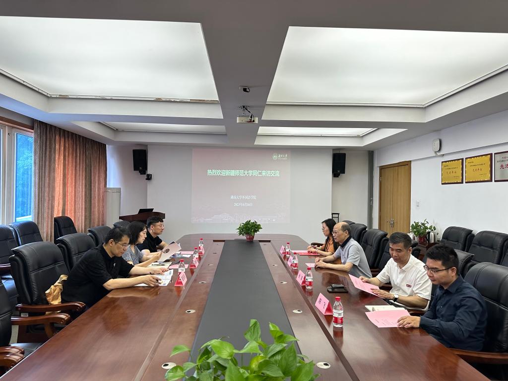 座谈会上,莫再树院长首先向对方介绍了学院发展历史及近年来在学科建设、人才培养、科学研究等方面取得的主要成绩及工作特色。随后双方重点在专业人才培养、青年教师培养、师资队伍建设等方面进行了深入交流探讨,新疆师范大学提出,希望今后在人才引进、教师援疆援校、专业人才培养等方面得到湖南大学外国语学院的帮助和支持。
