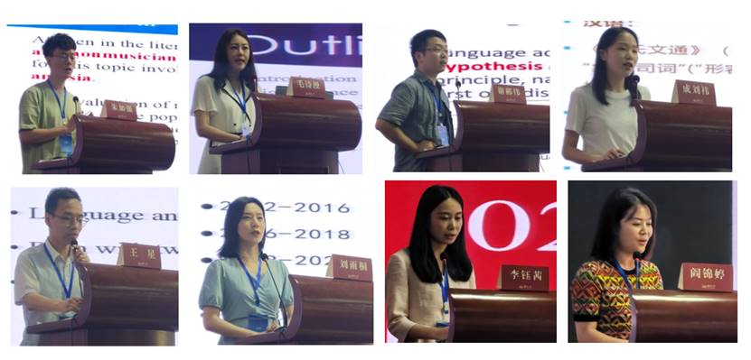 随后,来自全国高校优秀的八名博士与博士后分别作了精彩的学术报告,汇报了他们最新的科研进展。香港理工大学博士后朱加强和湖南大学博士后王星采用先进的脑电技术,从大脑机制的角度探究了语言和音乐的关系。此外,悉尼大学在读博士毛诗漫致力于二语习得方面的研究,她对于纠正性反馈这一传统话题提出了新的见解。香港理工大学谢郴伟博士和沧州师范学院副教授阎锦婷深耕于社会热点——病理人群的语言发展。谢郴伟探讨了中国老年人感知和产出的不对称性及其陈述性以及程序性知识记忆机制,探究了老年痴呆可能的成因。阎锦婷汇报了孤独症儿童声母与韵母的发展规律,对于孤独症儿童的言语诊断与康复具有一定的参考价值。