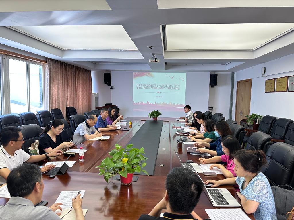 6月26日下午,外国语学院党委组织召开理论学习中心组(读书班)第五次集体学习,院领导班子成员、系部主任、副主任及党支部书记等参加会议,党委书记徐军主持。