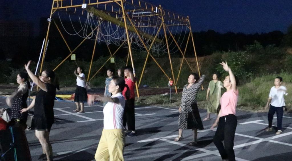 来到中心大广场,成员们被广场上欢快活泼的气氛所感染。在村民委员会的大力宣传与组织规范下,村民参与广场舞热情高涨。当谈及坚持跳舞的原因,村民们表示广场舞已经融入了他们的日常生活,是晚间娱乐不可缺少的部分。广场舞不仅能强身健体,也展现了村民热情向上的精神面貌?!叭窠∩硎侨迦嗣裨銮刻迤?、健康生活的基础和保障”。近年来,青树人民健康意识不断提升,更加注重追求健康生活,科学健身日益成为人们的自觉选择。