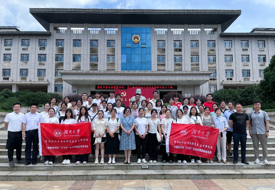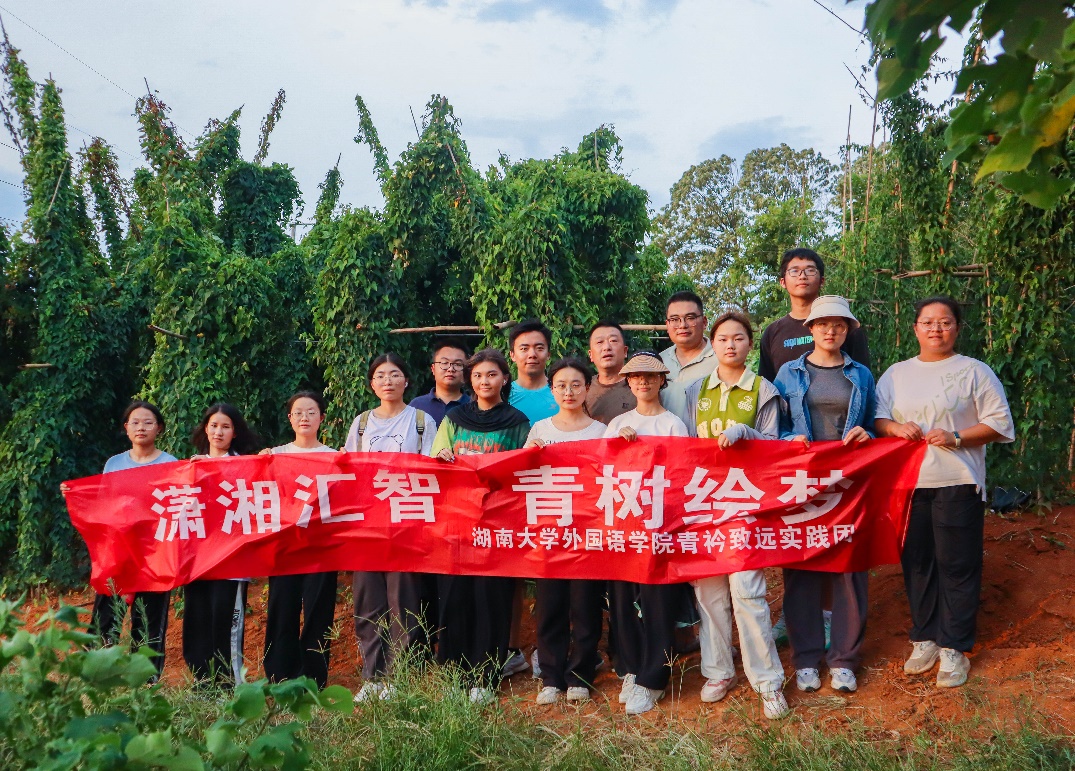 为深入学习贯彻习近平新时代中国特色社会主义思想,全面贯彻落实党的二十大精神,鼓励青年学子在学习与实践中锤炼品格,练就本领,建功时代,湖南大学外国语学院“青衿致远”实践团于暑期前往湖南省娄底市双峰县青树坪镇青树村开展 “三下乡”社会实践。实践团根据当地发布的面向高校大学生的暑期社会实践活动招募通知,以推动当地文旅融合为主要目标,针对特色产品,依托当地的旅游文化资源,结合当地地缘、民俗、方言等文化特色,挖掘人文故事并制作系列文旅宣传物料,为青树村发展贡献湖大学子的智慧与力量。