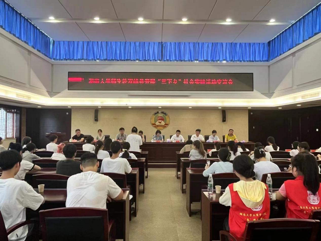 团队抵达娄底市后,受到了来自双峰县委统战部、县教育局的热情接待,全体成员来到双峰县县政府参加“三下乡”社会实践活动交流会?;嵘?,双峰县县委常委、统战部部长刘燕对全体参加实践的同学的到来表示热烈欢迎,并向同学们介绍县里教育、经济发展、文化底蕴等方面基本情况。此外,她也鼓励同学们去基层长见识增本领,了解基层需要,扎根实践土壤。