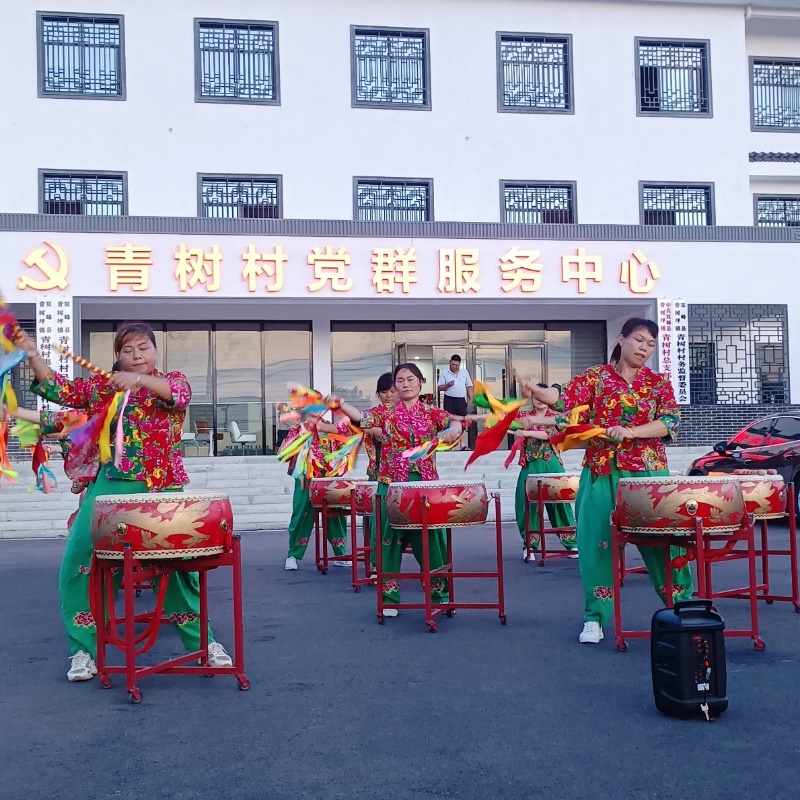 7月7日傍晚,青树村花鼓队在党群服务中心表演经典曲目《浏阳河》。据花鼓队成员所述,队伍表演花鼓戏已一年有余,队里的花鼓与相关设备都由村委会出资购买,以此在传承发扬中华优秀传统民俗文化的同时带动全民健身的氛围?!颁艉油浼竿澹甘锼返较娼?。落日熔金,悠扬的歌声与激昂的鼓点交汇融合,歌颂着人民解放与幸福安康,一齐演奏乡村振兴演奏高歌。