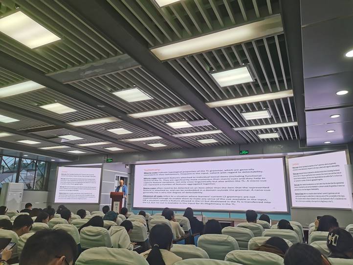 在随后的互动环节中,袁教授与现场师生进行了亲切的交流,就听众提出的问题进行了热情回答。他进一步指出,对语言习得中不同线索进行区分的重要性,并鼓励在场师生在今后的学习和研究中积极探索和应用这一理论框架。讲座在热烈的掌声中结束。袁博平教授的精彩演讲为师生带来了新的视角和思考,对于推动语言学研究的发展具有积极意义。