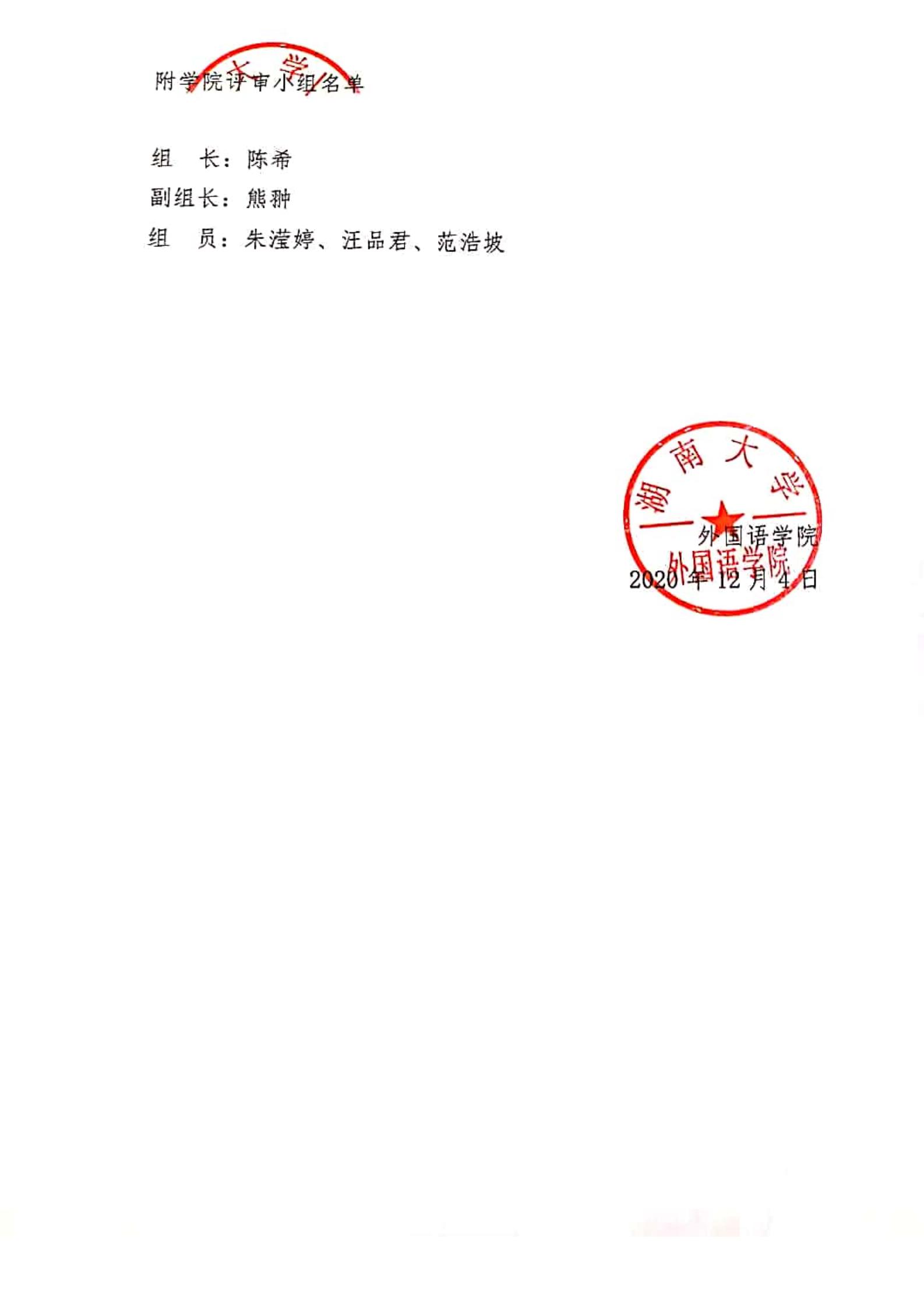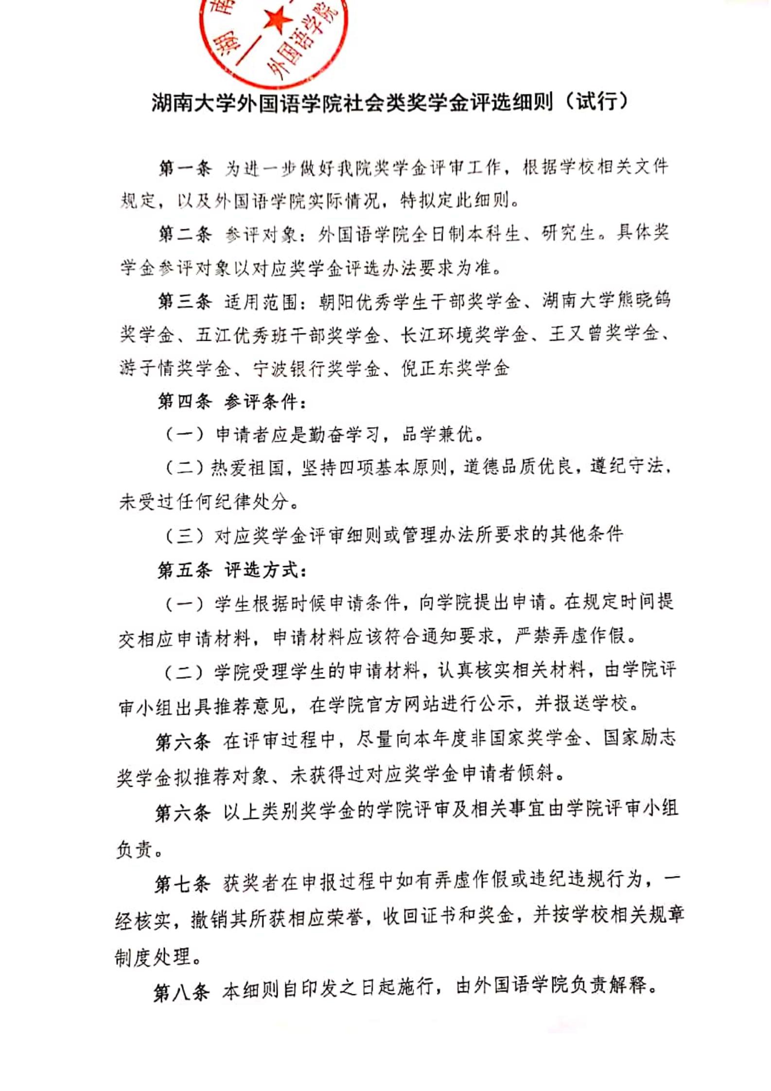 上一条:2020-2021学年度外国语学院“湖南大学-国酒茅台‘薪火计划’励学金”评选结果公示 下一条:外国语学院关于研究生未按时健康打卡的批评通报