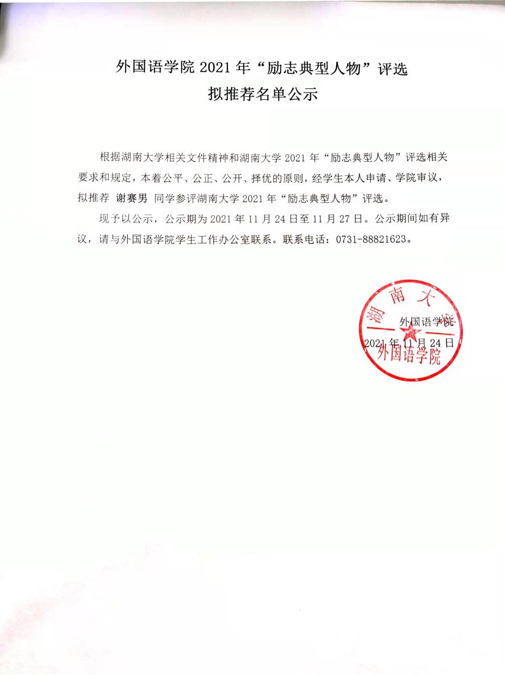 上一条:外国语学院关于开展湖南大学2021-2022学年度优秀班集体创建申报立项结果的公示 下一条:外国语学院关于未按时健康打卡学生的批评通报