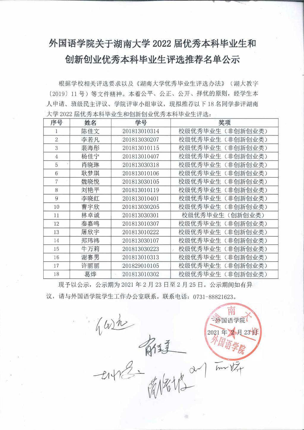 上一条:外国语学院2022届省级优秀本科毕业生和创新创业优秀本科毕业生评选拟推荐名单公示 下一条:外国语学院关于杨欢同学违反疫情期间假期管理纪律的通报批评