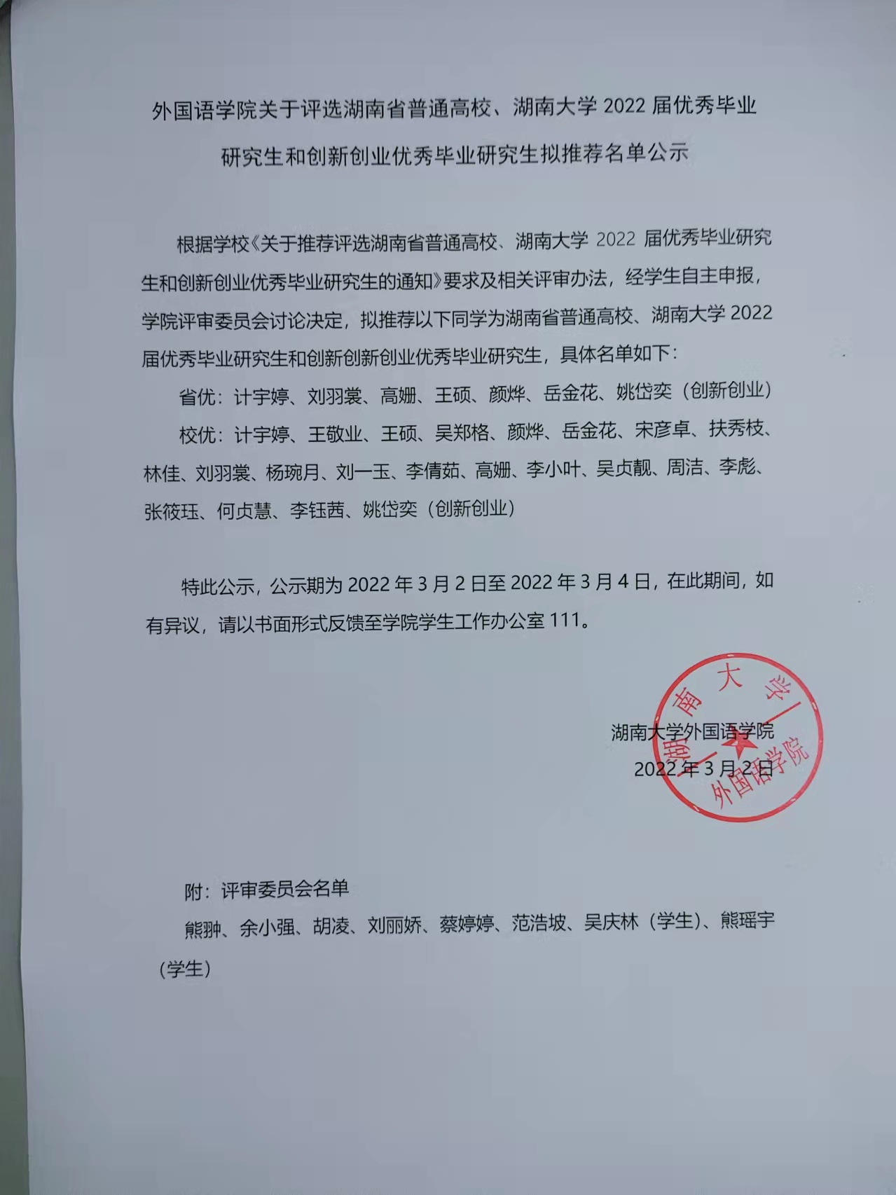 上一条:外国语学院2022-2023上半学年学工人员联系表 下一条:外国语学院2022届省级优秀本科毕业生和创新创业优秀本科毕业生评选拟推荐名单公示