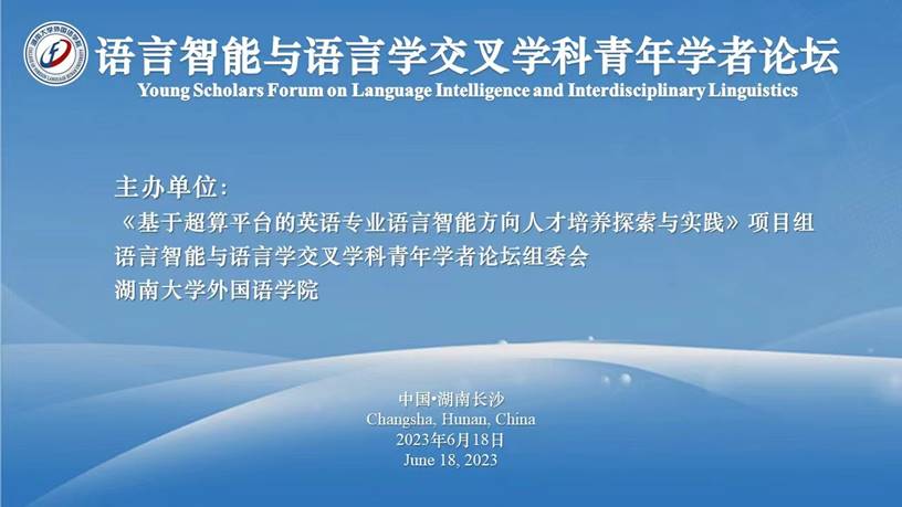 首届湖南大学外国语学院青年学者论坛——语言智能与语言学交叉学科青年学者论坛由湖南大学外国语学学院和教育部首批新文科研究与改革实践项目《基于超算平台的英语专业语言智能方向人才培养探索与实践》项目组主办。本论坛旨在为海内外优秀青年学者搭建学术交流平台,通过学术研讨会和人才洽谈会等形式,围绕语言智能、语言学交叉学科等研究方向的国际学术前沿开展交流与探讨,促进国际青年学者之间的交流和合作,携手探索科学前沿,共同攀登学术高峰。