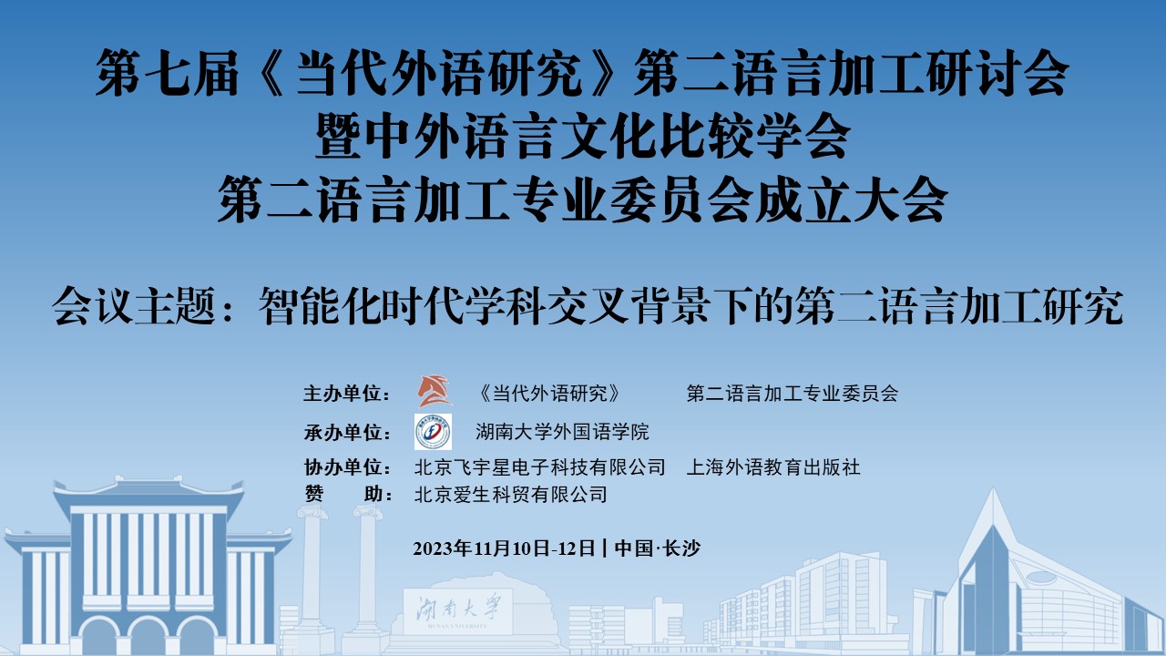 今年,由《当代外语研究》、第二语言加工专业委员会主办,湖南大学外国语学院承办的“第七届《当代外语研究》第二语言加工研讨会暨中外语言文化比较学会第二语言加工专业委员会成立大会”拟定于2023年11月10日至12日在湖南大学召开。